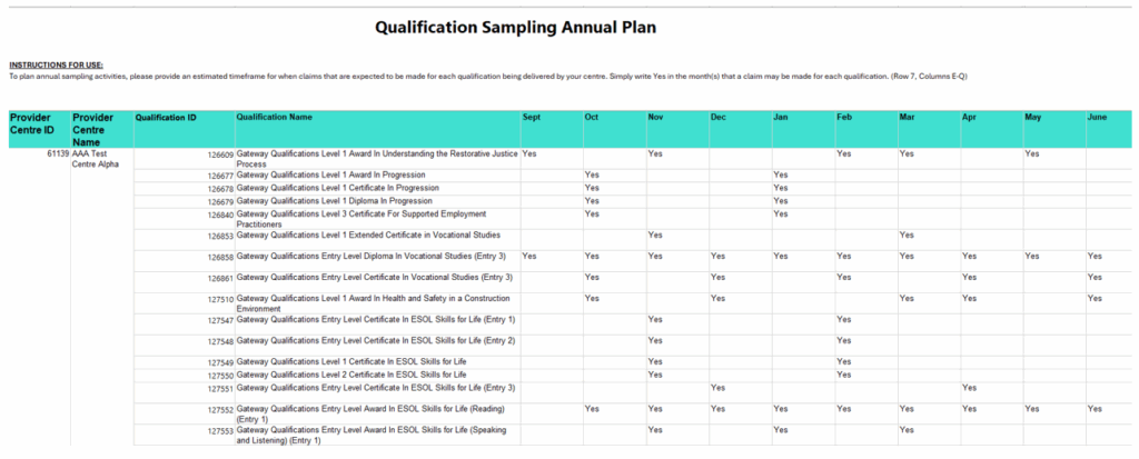 You are welcome to add all the times throughout the year when you expect to submit a claim, and your EQA(s) will review the completed Annual Plan during both Centre Monitoring and Qualification Sampling activities throughout the year, working with you to combine your sampling into manageable timeframes which align with your certification expectations.