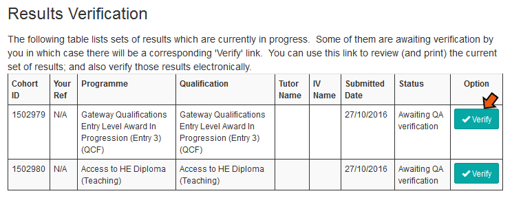 - Select the cohort to be verified by clicking on the ‘Verify’ button on the right