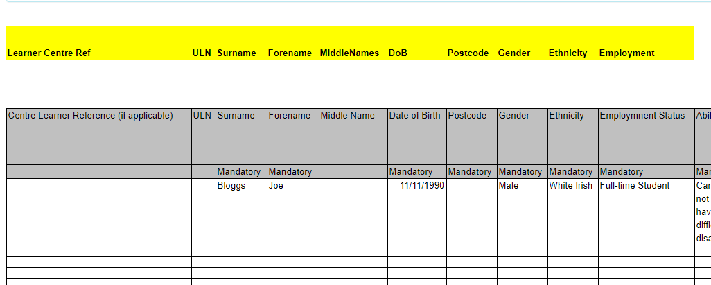 Tab 1/Learner Registrations – Enter your learner details ensuring all mandatory fields are complete.